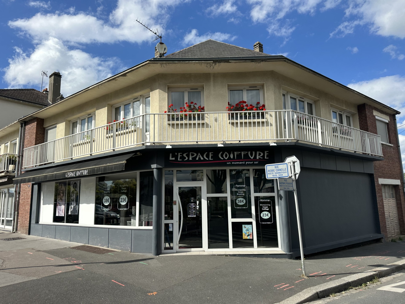 Immeuble d'après guerre, en très bon état général à usage de commerce et d'habitation actuellement loué à un salon de coiffure (depuis 30 ans) au rez-de-chaussé. et en habitation.
